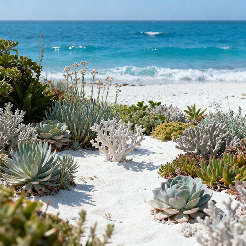 또한, 염생식물과 비염생식물을 함께 심을 때는 염분 저항성이 강한 식물을 바깥쪽에, 약한 식물을 안쪽에 배치해 바람에 실려오는 염분을 막는 식의 ‘자연 방패’를 만들어주면 효과적입니다. 그리고 가능하다면 다육성 염생식물을 중심으로 구성하면 수분 관리도 쉬워집니다.